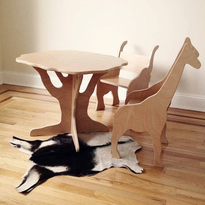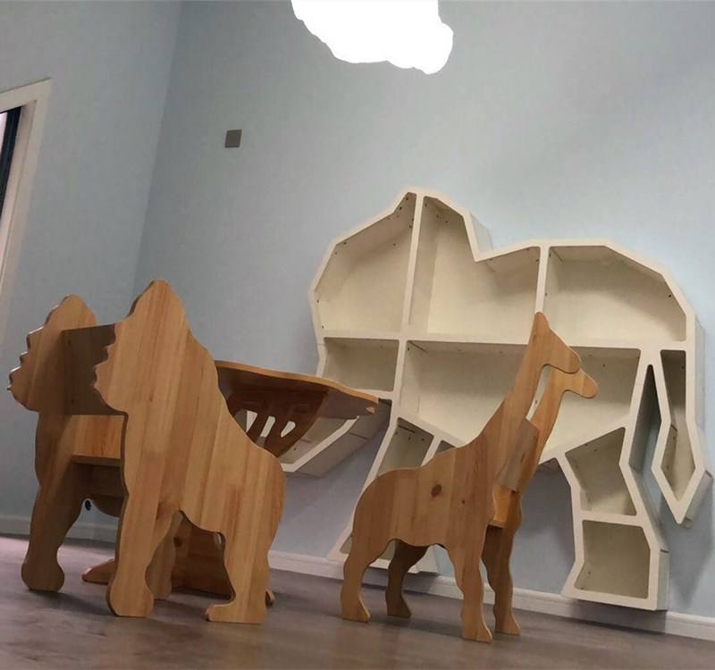Chiquitos Solid wood bench kindergarten picture book hall children's chairs animal shaped stool early education center table