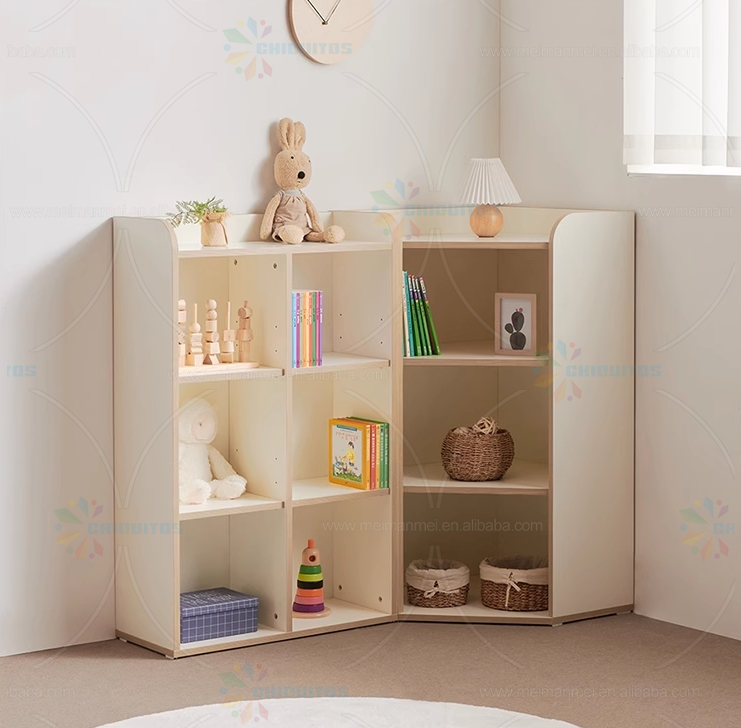 Chiquitos Square Solid Wood Children'S Bookcase Toy Cabinet Floor Bookcase Corner Combination Lattice Cabinet Storage Cabinet