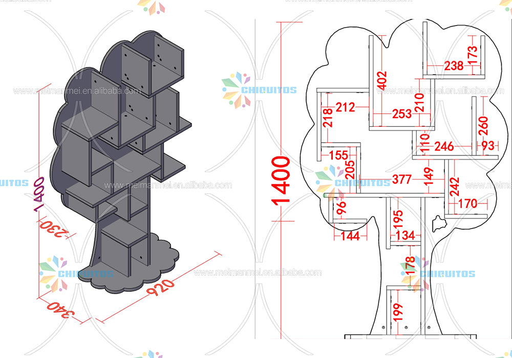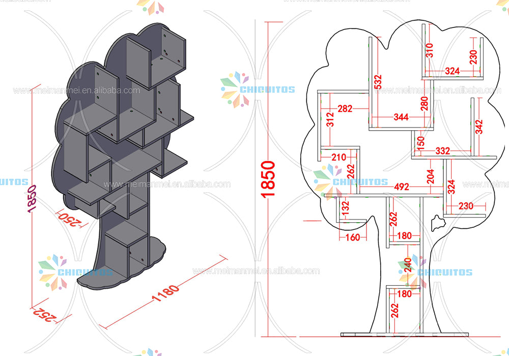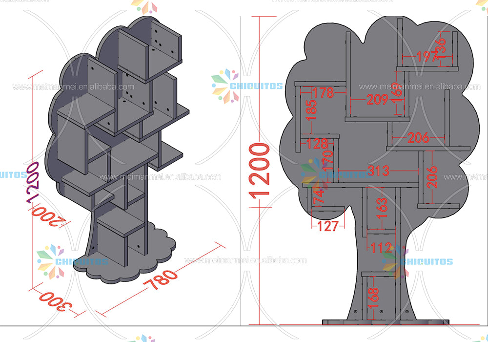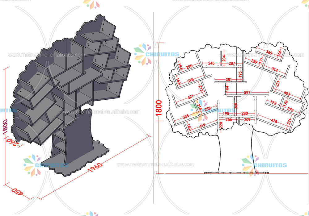 Chiquitos Tree Bookshelf Reading Area Children's Bookcase Window Display Shelf for Kindergarten School Library decoration