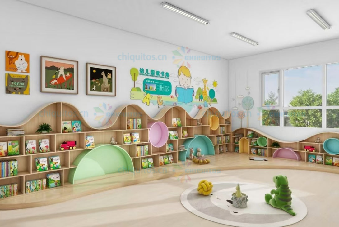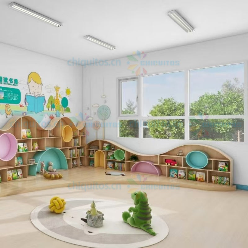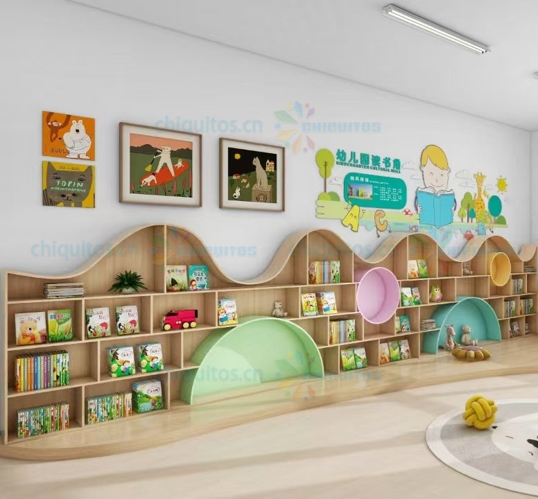 Chiquitos Wave-Shaped Kids Bookshelf for Kindergarten Creative Storage Display Unit Children Reading Corner Furniture