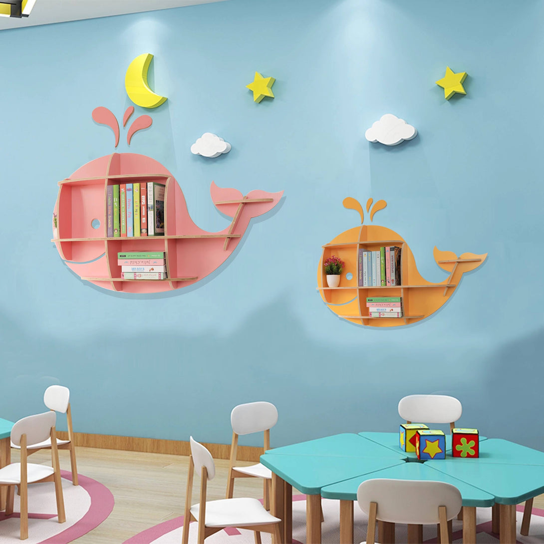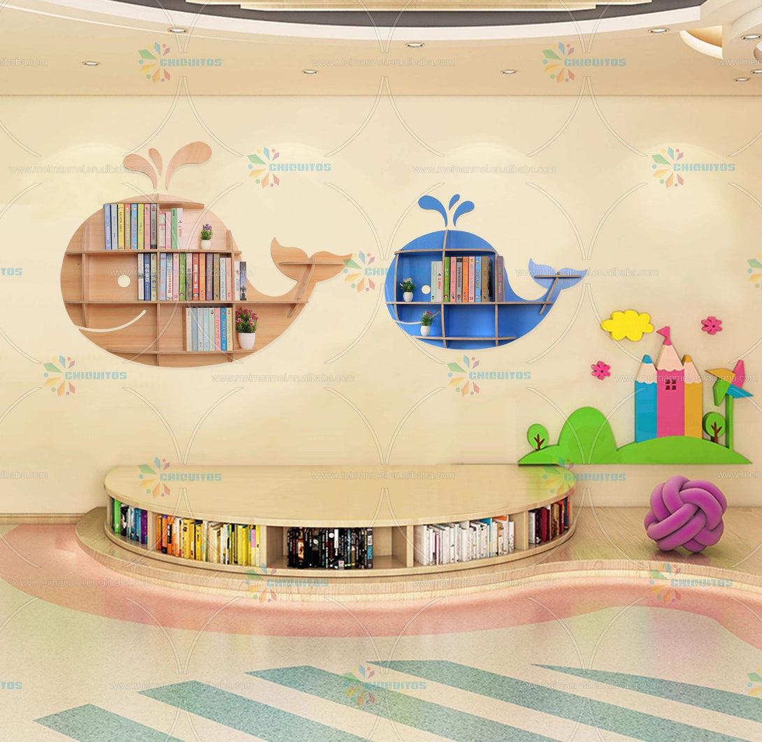 Chiquitos Whale Book Shelf Children's Library Reading Book Shelf Storage Shelf Wooden Creative Cabinet for Early Education