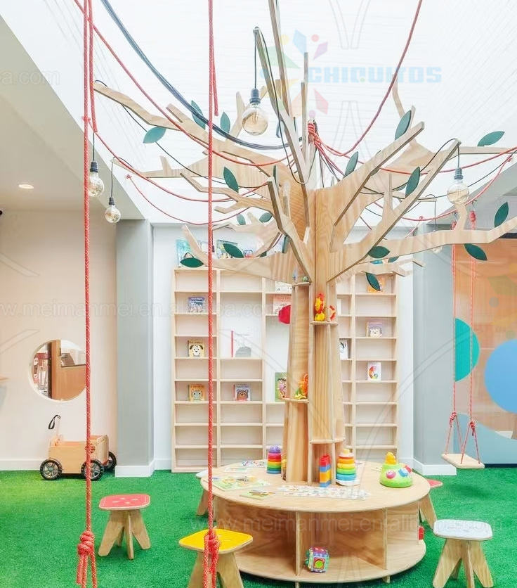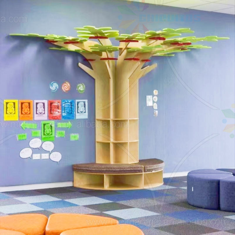 Chiquitos Wholesale Tree Shaped Modern Library Kindergarten School Tree Wooden Bookshelf Popular Design Reading Tree Bookshelf