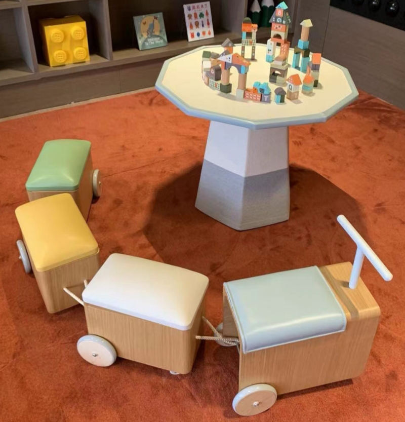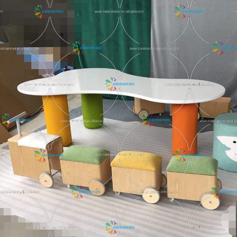 Chiquitos Wood Living Room kids Storage Cabinet with wheel Train styling Storage for Preschool Daycare Furniture