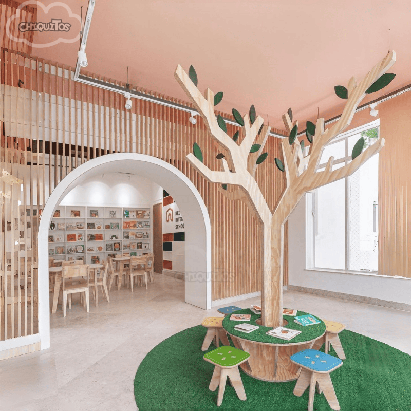 Chiquitos Wood Tree Bookshelf Organizer Freestanding Book Rack Space Saving Display Shelf Bookcase for Early Learning Center