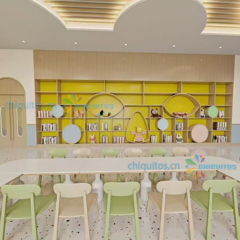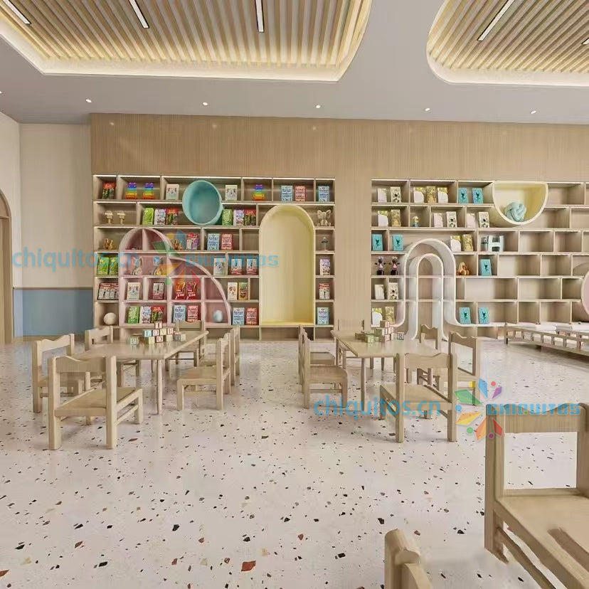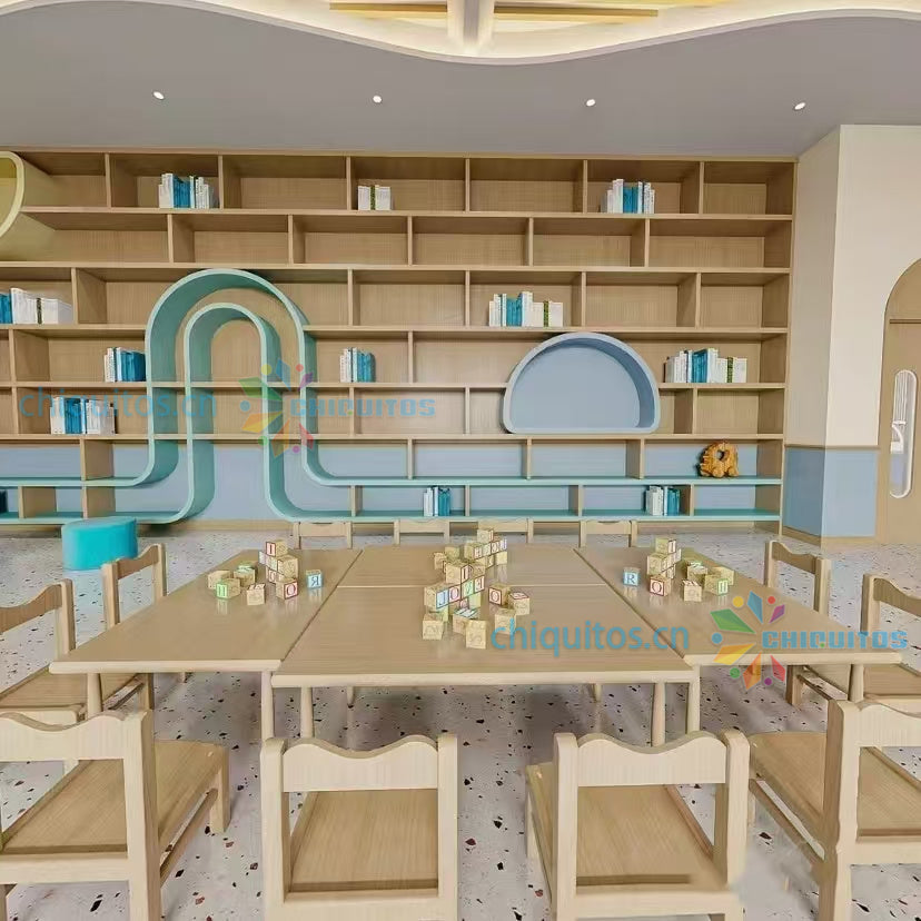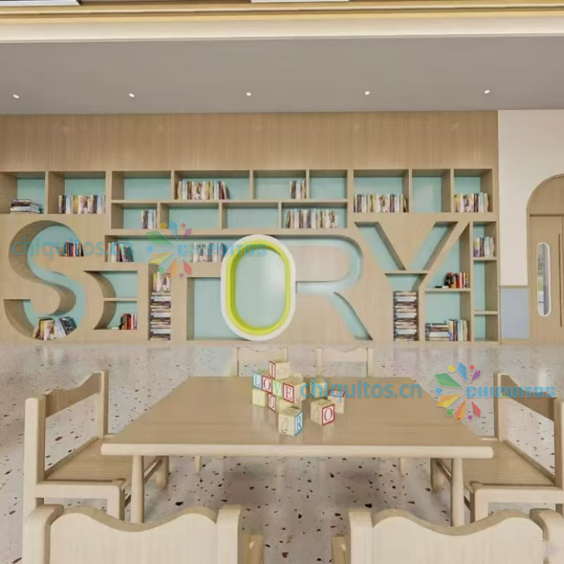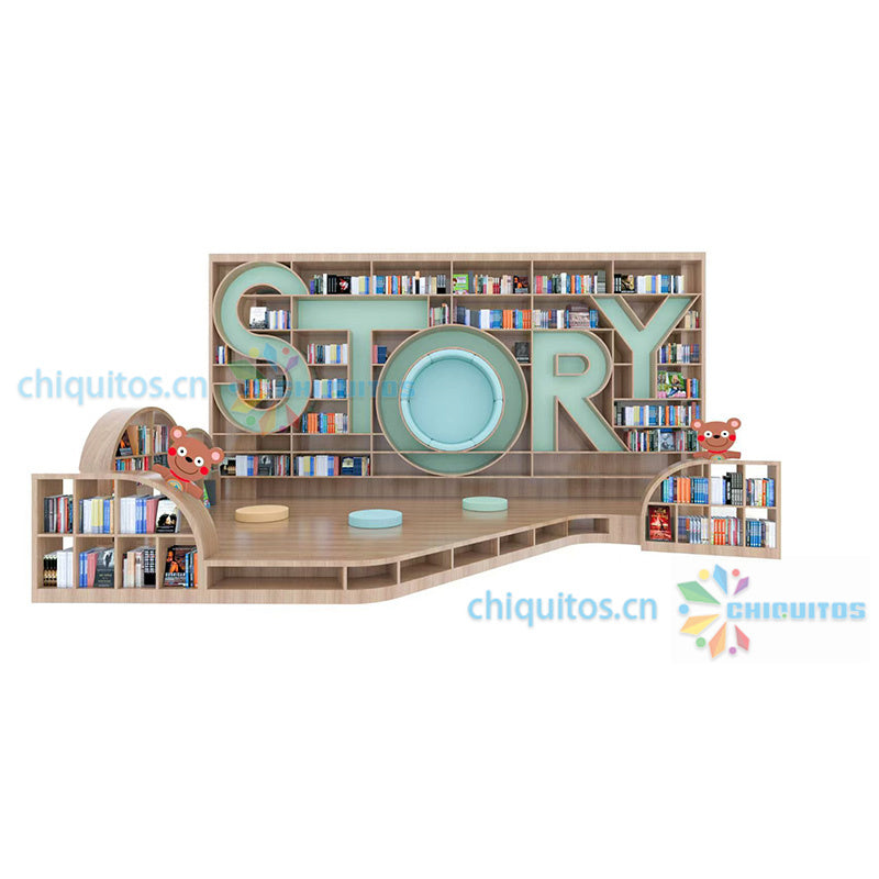 Chiquitos Wooden alphabet design reading nook area Kids Library Furniture Sets Bookshelf for home daycare preschool kindergarten