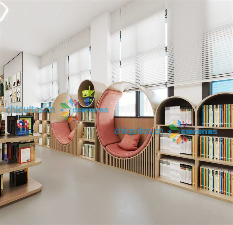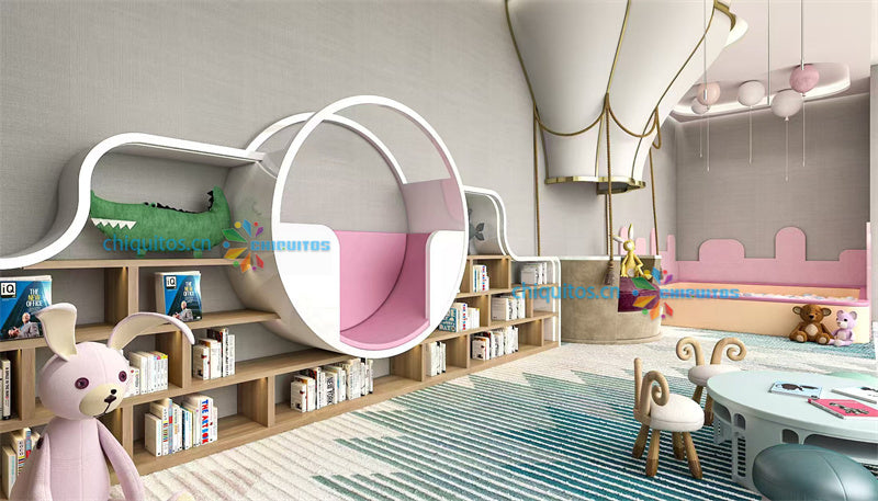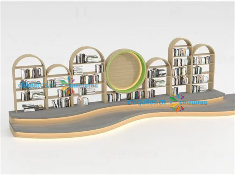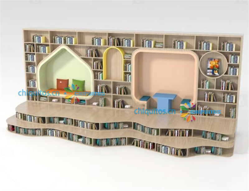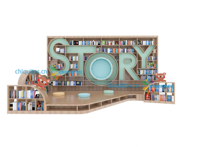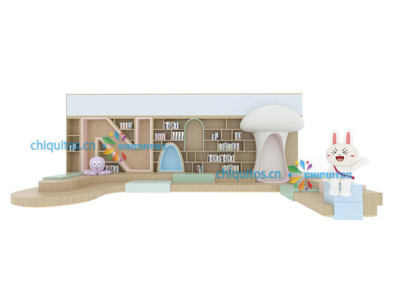 Chiquitos Wooden animal design reading nook area Kids Library Furniture Set Bookshelves for home daycare preschool kindergarten