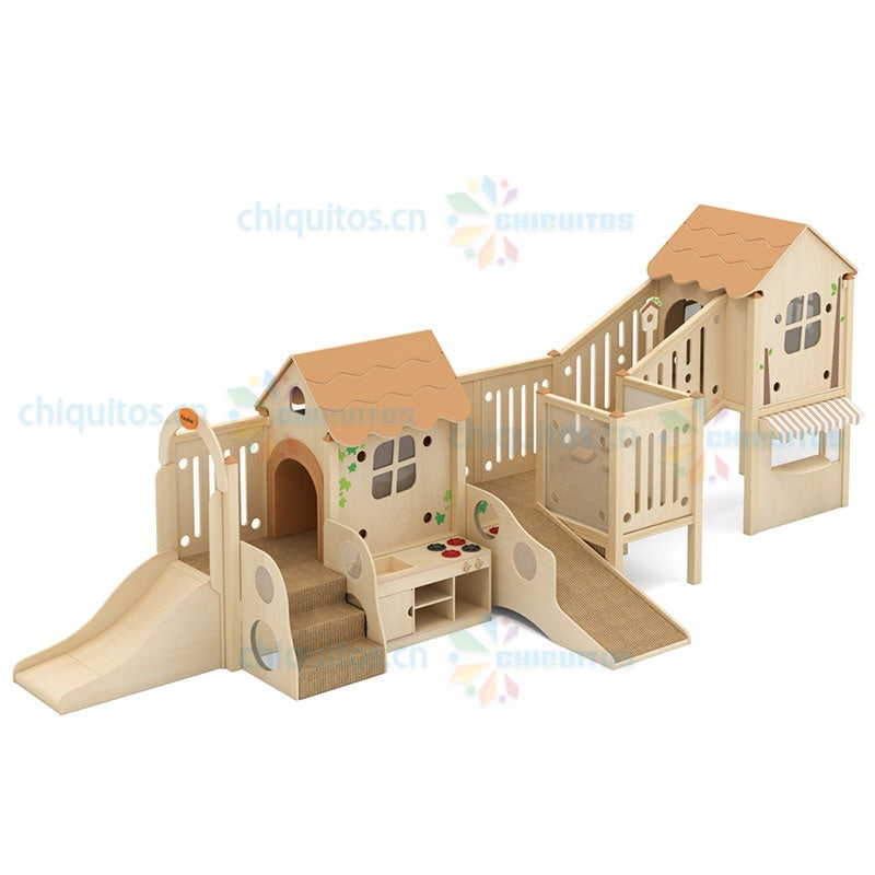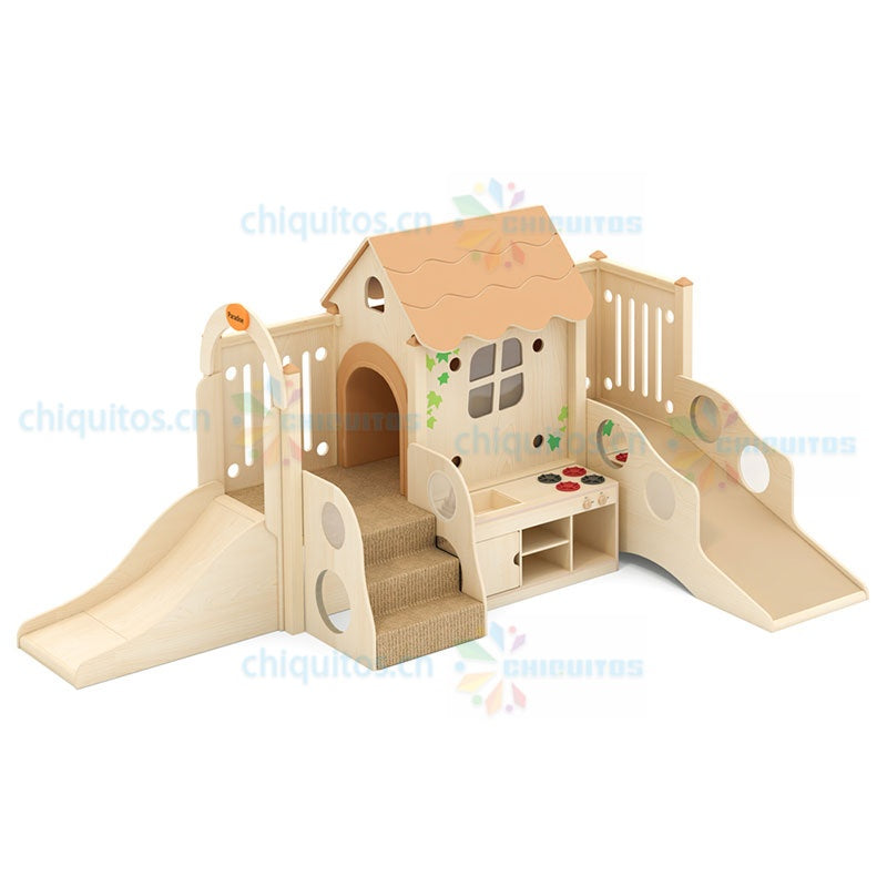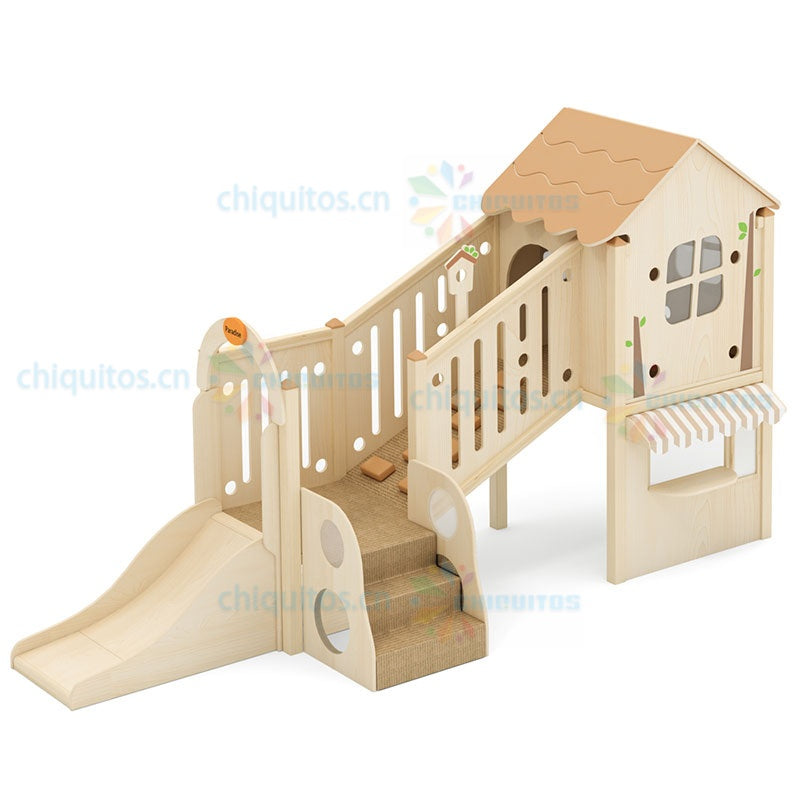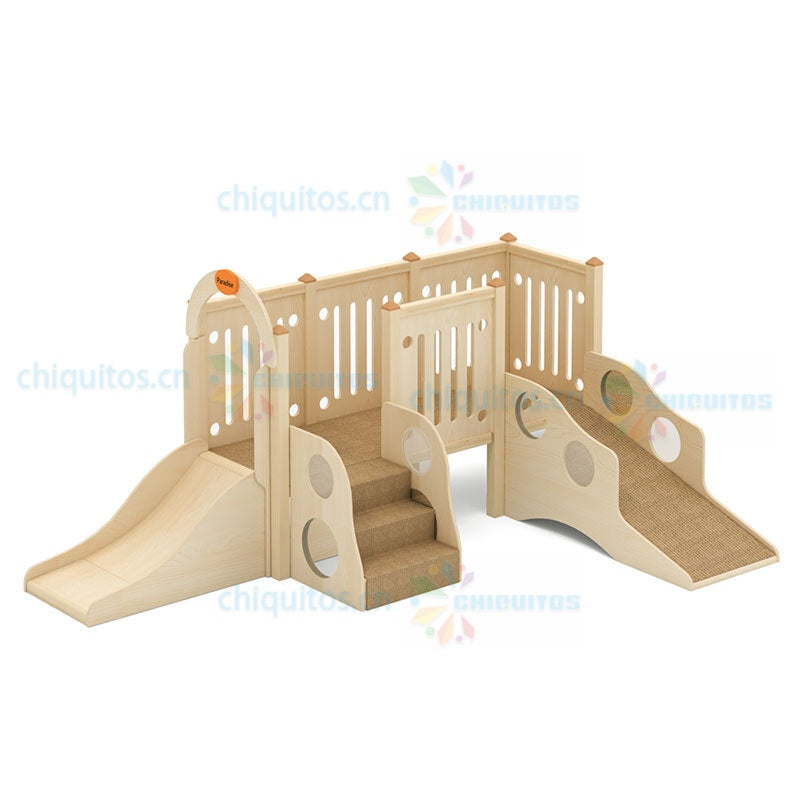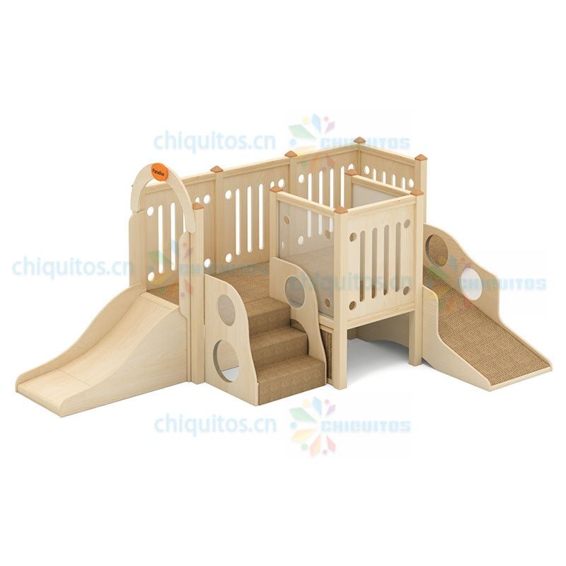 Chiquitos Wooden Indoor Kids Climbing and Sliding Play Structure with Safe Design for Early Learning Centers