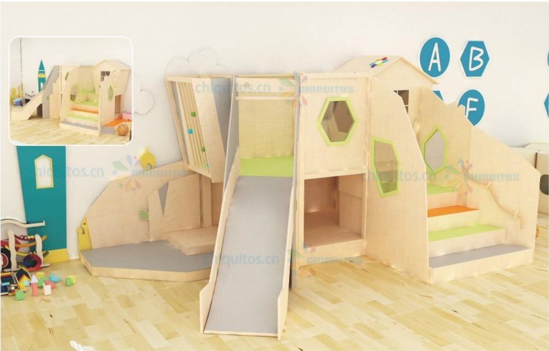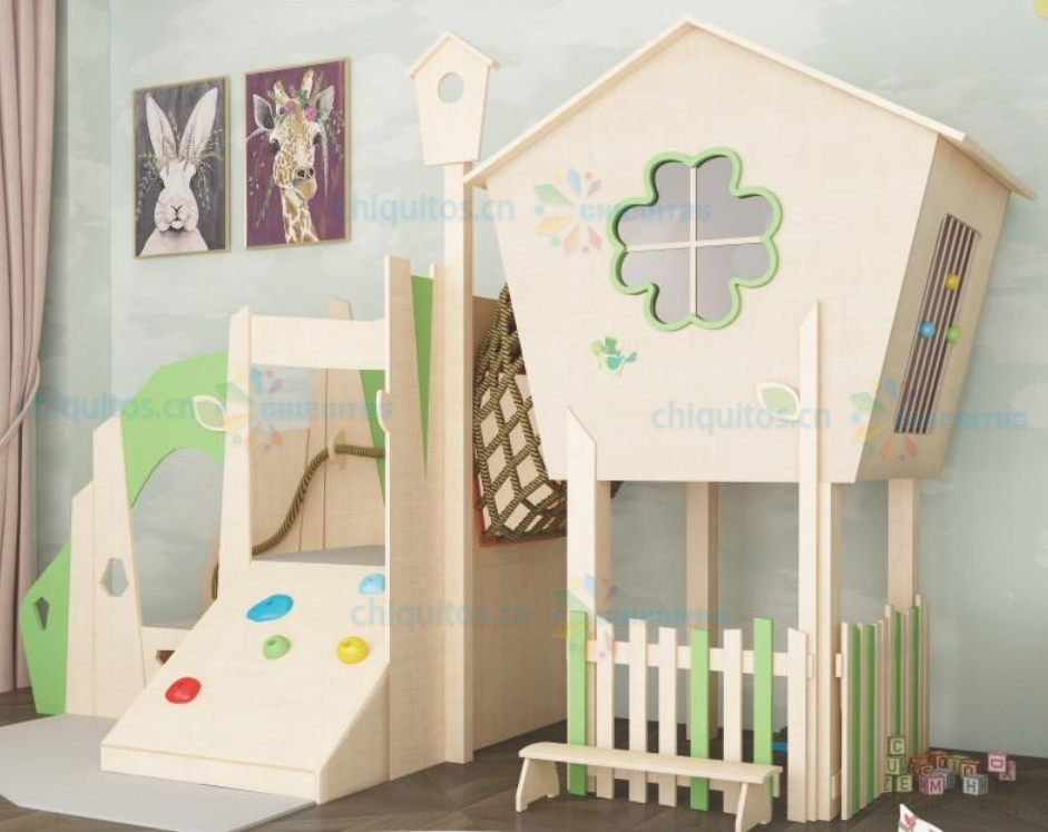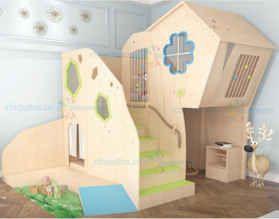 Chiquitos Wooden Kids Playhouse Bed with Slide and Climbing Steps for Indoor Fun and Learning Space