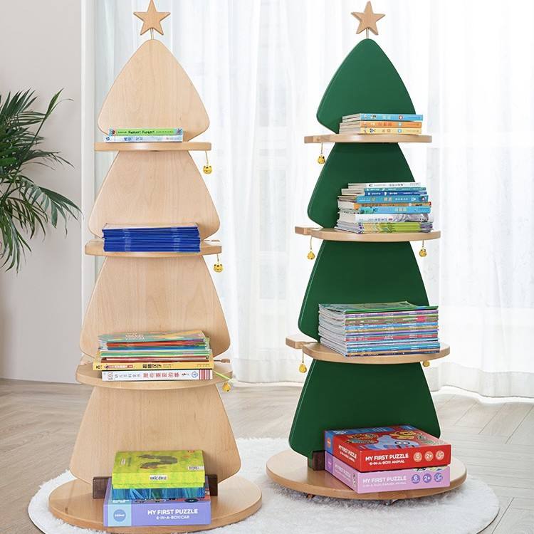 Christmas Tree Rotating Bookshelf all solid wood 360 degree rotation